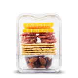 - Almond and Cranberry Mix (Roasted & Salted Almonds [Almonds, Cottonseed Oil, Salt], Dried Cranberries [Cranberries, Sugar, Sunflower Oil], Salami Nuggets (Pork, Sea Salt, Sugar, Pepper, Natural Flavoring, Garlic, Starter Culture), Medium Cheddar (Cultured Milk, Salt, Enzymes, Annatto [color]), Everything & More Crackers (Enriched Unbleached Flour [Wheat Flour, Malted Barley Flour, Niacin, Reduced iron, Thiamin Mononitrate, Riboflavin, Folic Acid], Buttermilk (Cultured Low-fat Milk, Salt, Sodium Citrate), Expeller Pressed Non-GMO Canola Oil and/or Sunflower Oil, Extra Virgin Olive Oil, Whole Grain Flour (Wheat Flour, Dark Rye Flour, Amaranth Flour, Quinoa Flour), Sesame Seeds, Sea Salt, Onion Juice, Chia Seeds, Poppy Seeds, Flaxseeds, Baking Soda, Roasted Garlic, Caraway Seeds)